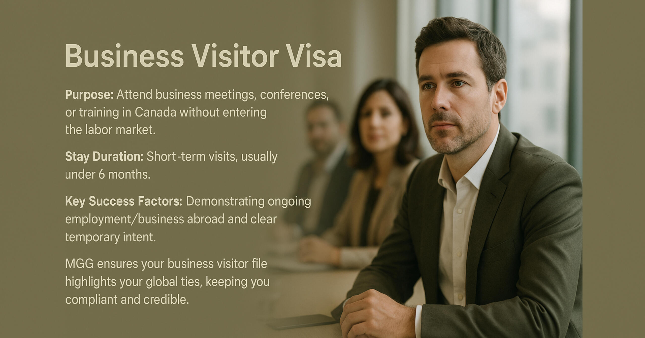 The arrival targets for Temporary residents in the 2025-27 Levels Plan are set at 673,650 in 2025— a clear sign that Canada remains one of the world’s most welcoming destinations.Whether you’re planning a vacation, visiting family, or attending critical business meetings, preparing a strong visa application is key to a smooth entry into Canada.At MGG Immigration, we craft visitor visa strategies that anticipate officer concerns, strengthen your proof of intent, and maximize your chances of success.